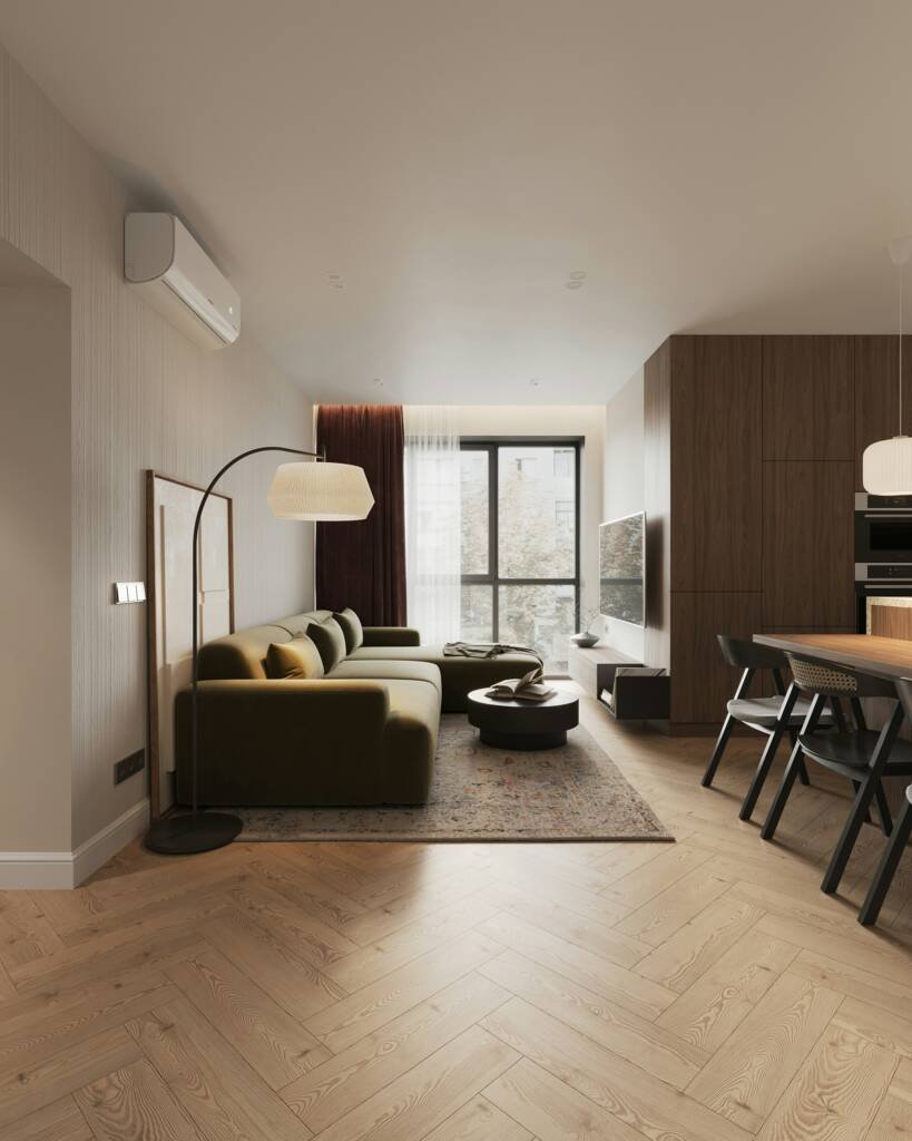 - Warme houtaccenten brengen balans in het moderne geheel